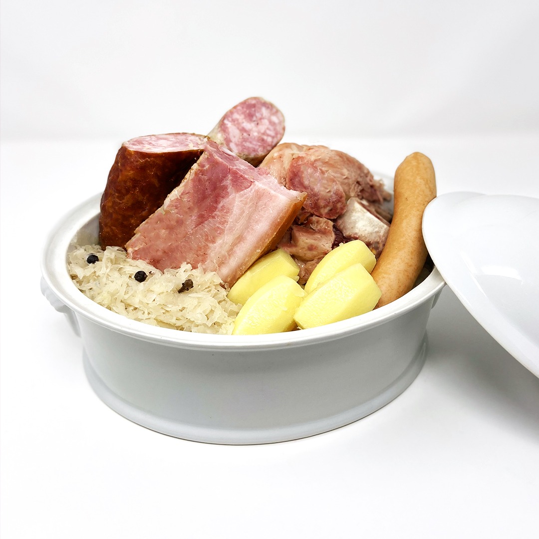 Nous vous conseillons d'accompagner votre choucroute avec un verre de Riesling ou de Sylvaner et de la moutarde à l'ancienne.