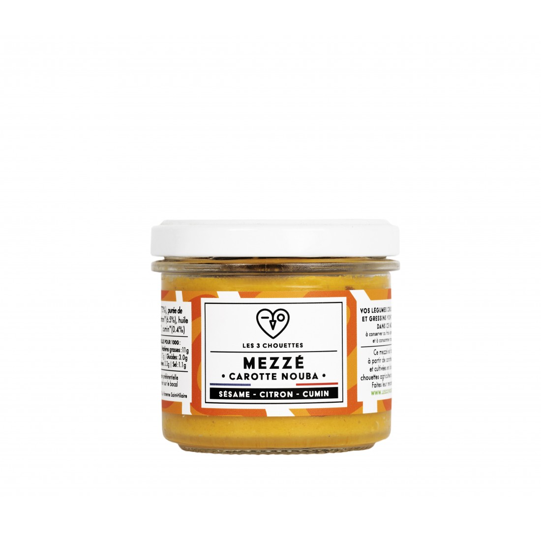 Carotte française 73.3%, purée de sésame, jus de citron, huile d'olive, sel marin origine France, ail, eau, cumin 0.4%