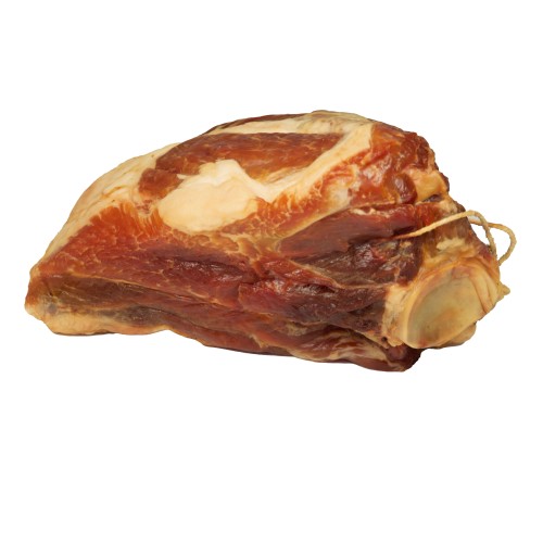 Un délicieux morceau d'épaule de porc fumé traditionnellement dans notre fumoir au bois de hêtre.